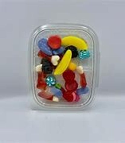 UNA TARRINA 500CL LLENA DE GOMITAS VARIADAS CON AZUCAR
